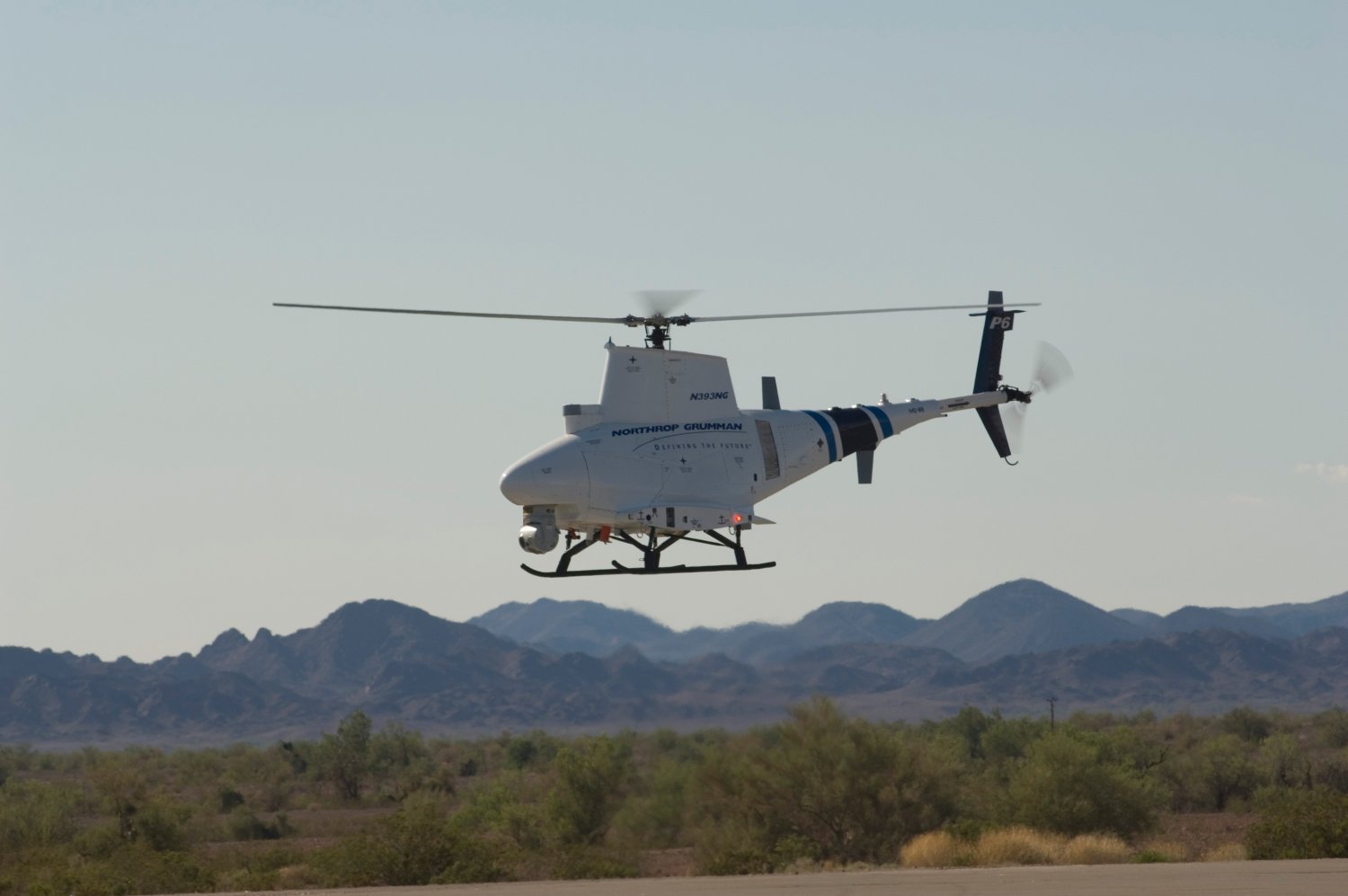 Northrop Grumman ASTAMIDS sensor mounted on Firescout unmanned helicoptor in flight.